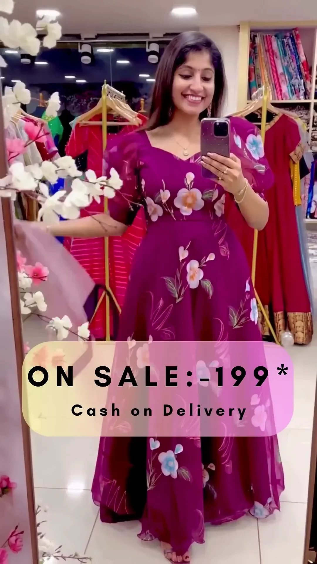 Fabric – hand painted floral organza. (with full lining, lining mandatory).