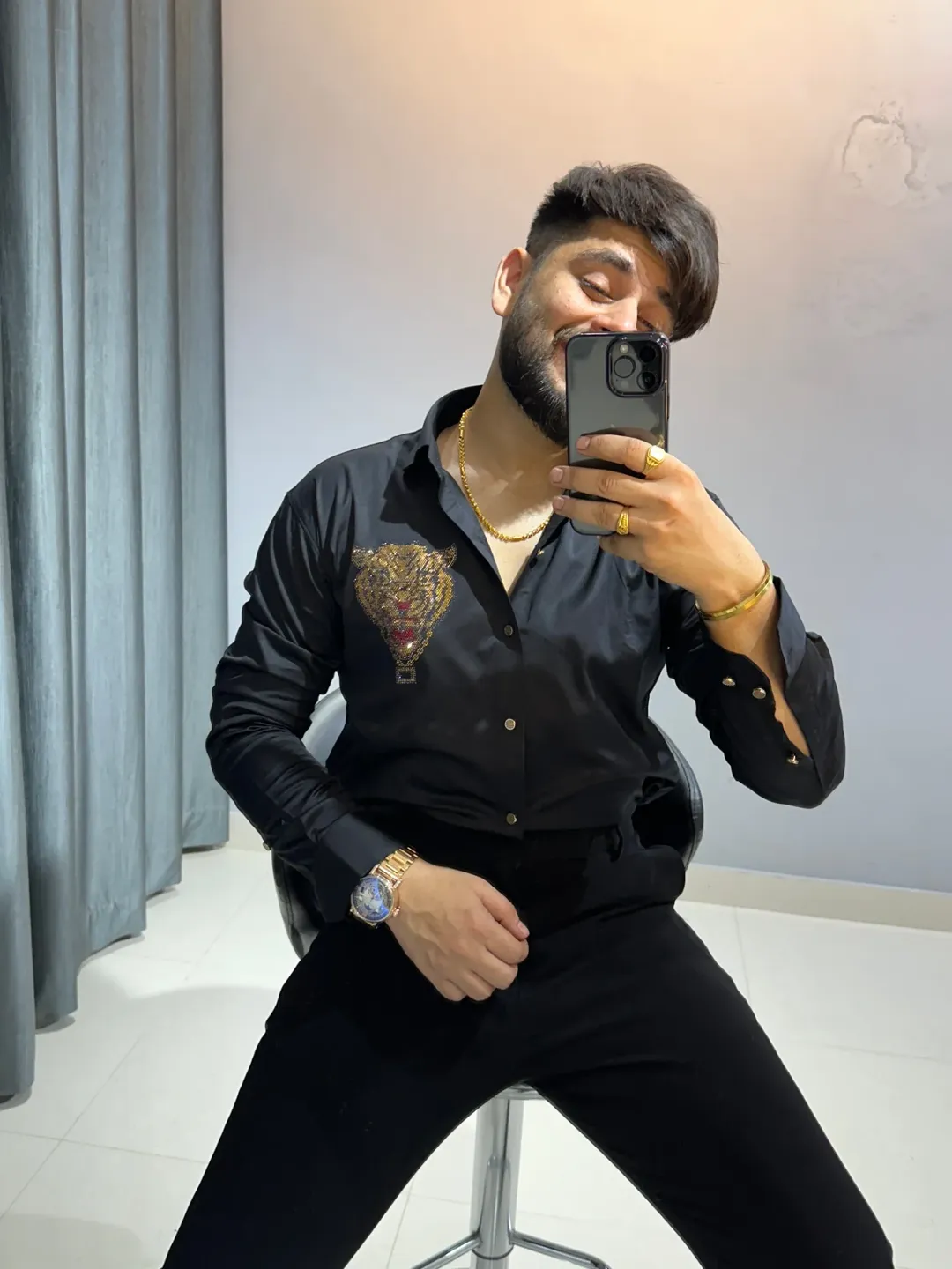 Redefine your style with this Premium Embroidered Black Designer Shirt, blending subtle elegance with modern luxury.